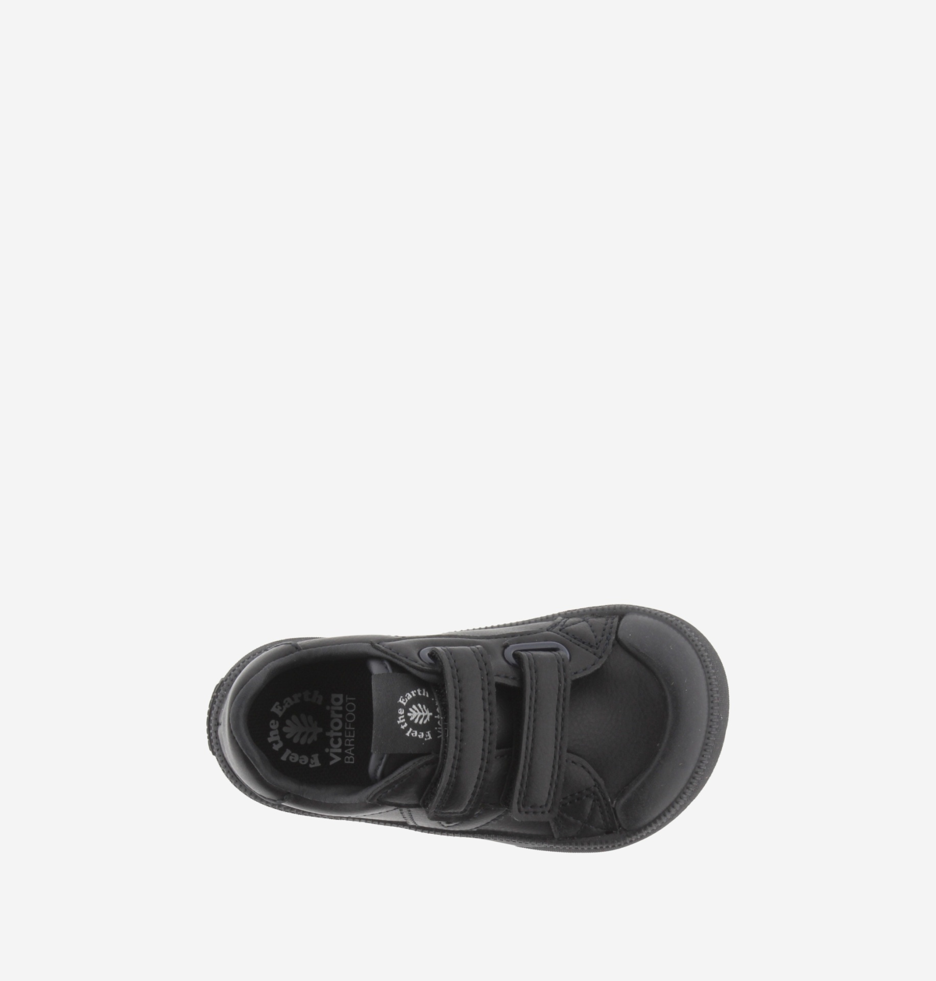 Ténis de camurça com painéis contrastantes com efeito couro. Possui fechos de velcro (três para tamanhos 36 e acima), facilitando o calce e promovendo a independência. O solado de borracha é reforçado na ponta para maior resistência e durabilidade.